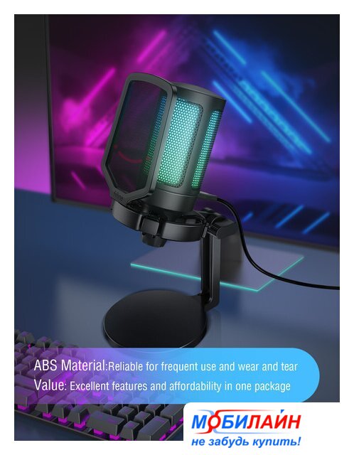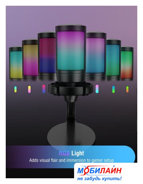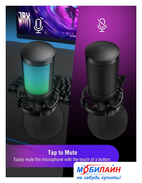 конденсаторный, кардиоидная направленность, настольный, для стриминга и подкастов, 100-20000 Гц, подключение по USB Type-A, черный
