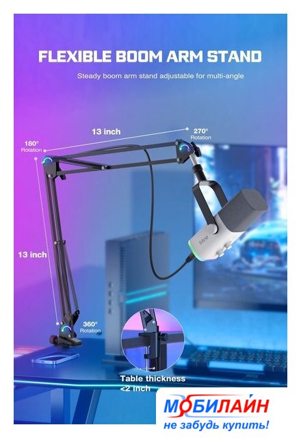 электретный (малый конденсатор), настольный, для стриминга и подкастов, кардиоидная направленность, 20-20000 Гц, разъем подключения USB Type-A/USB Type-C