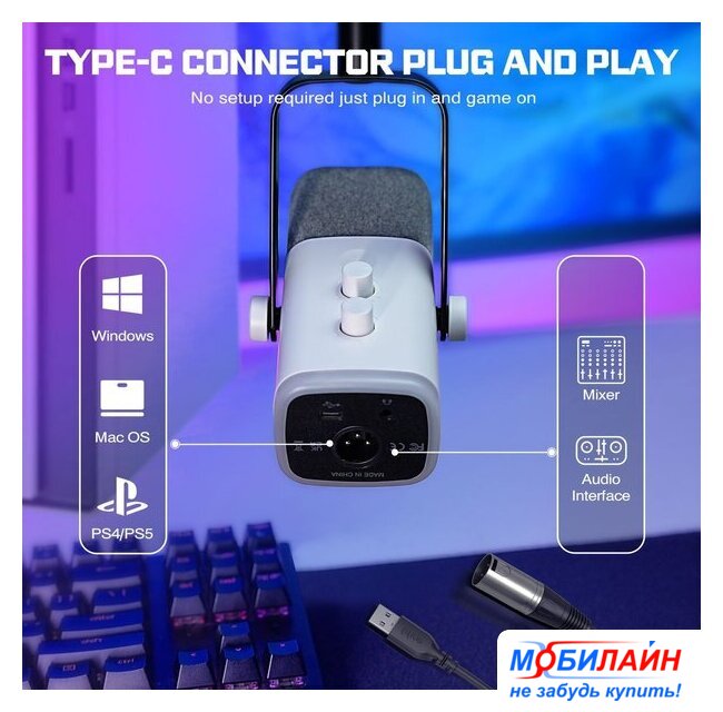 Разъем(-ы) на микрофоне | USB Type-C, 3-pin XLR |