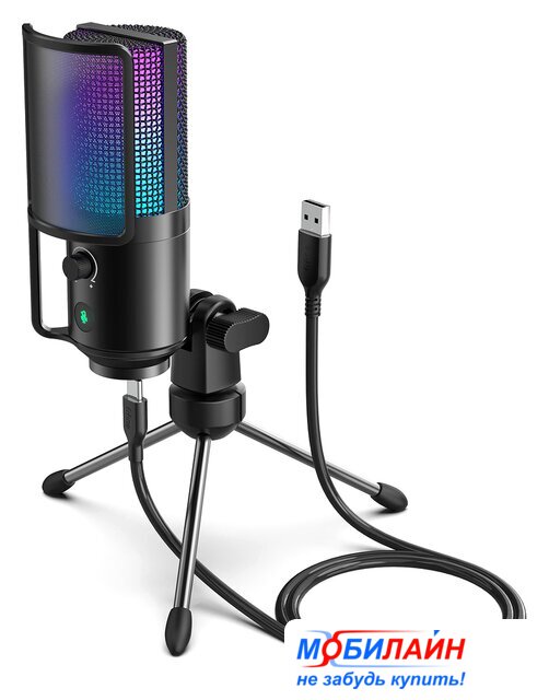 электретный (малый конденсатор), настольный, для стриминга и подкастов, кардиоидная направленность, 70-20000 Гц, разъем подключения USB Type-A