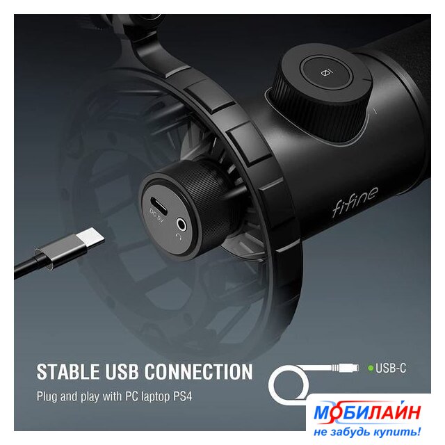 конденсаторный, кардиоидная направленность, настольный, для стриминга и подкастов, 60-18000 Гц, подключение по USB Type-A, черный