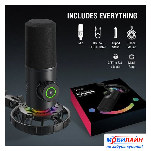 Комплект поставки | - настольная подставка (трипод)- антивибрационный держатель- металлическое кольцо-держатель- резьбовой адаптер (3/8" - 5/8")- кабель USB Type-C - USB Type-A- документация |