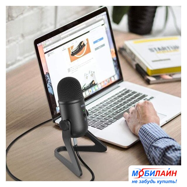 электретный (малый конденсатор), настольный, для стриминга и подкастов, кардиоидная/круговая/двойная ("восьмерка")/стерео направленность, 40-20000 Гц, разъем подключения USB Type-A, длина кабеля 1.5 м