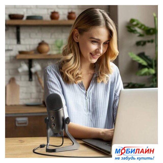 конденсаторный, кардиоидная направленность, настольный, для стриминга и подкастов, 60-18000 Гц, подключение по USB Type-A, черный