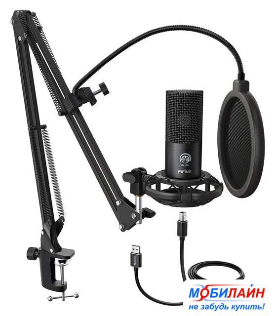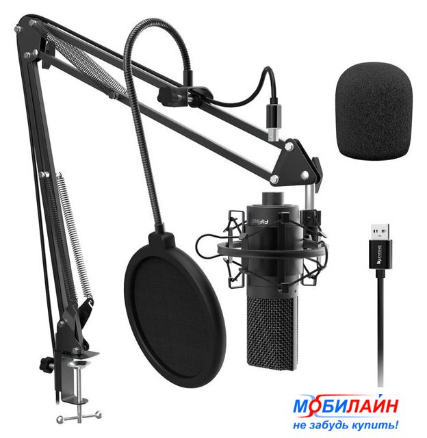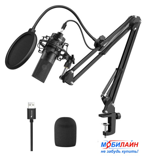 конденсаторный, кардиоидная направленность, настольный, для стриминга и подкастов, 50-15000 Гц, подключение по USB Type-A, черный