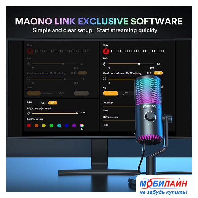 динамический, настольный, для стриминга и подкастов, кардиоидная направленность, 40-16000 Гц, разъем подключения USB Type-A/USB Type-C