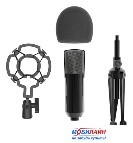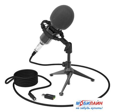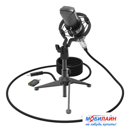 конденсаторный, круговая направленность, настольный, для стриминга и подкастов, 100-10000 Гц, подключение по 3.5 мм, черный