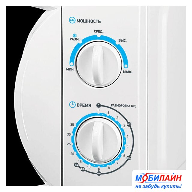 отдельностоящая, микроволны (соло), объем 20 л, выходная мощность микроволн 800 Вт, управление механическое, цвет белый