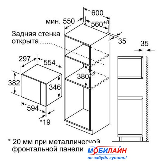 встраиваемая, микроволны (соло), объем 20 л, выходная мощность микроволн 800 Вт, управление электронное, автоприготовление, авторазмораживание, цвет черный
