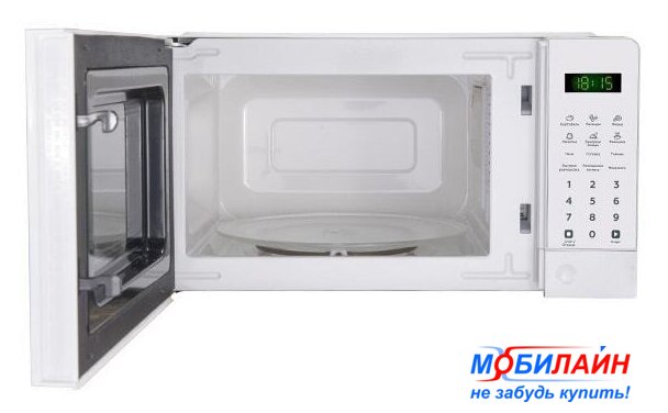 отдельностоящая, микроволны (соло), объем 20 л, выходная мощность микроволн 800 Вт, управление механическое, цвет белый