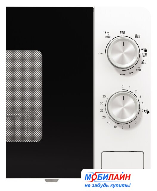 отдельностоящая, микроволны (соло), объем 20 л, выходная мощность микроволн 800 Вт, управление механическое, цвет белый