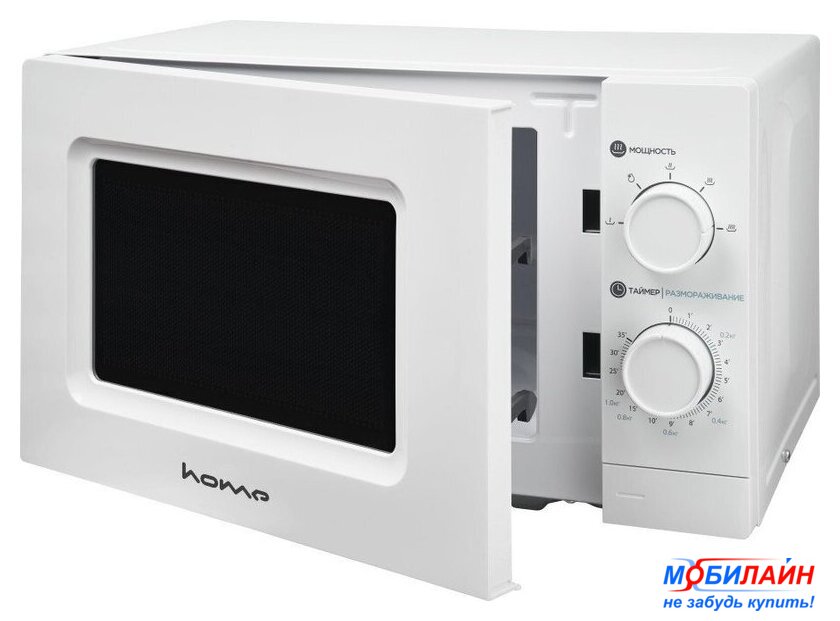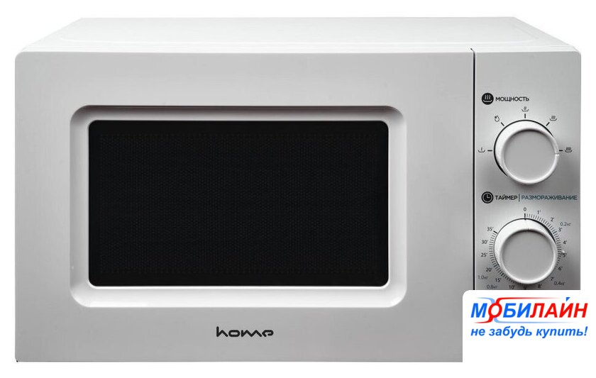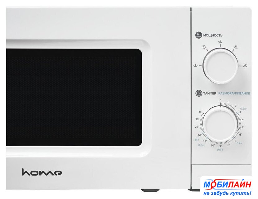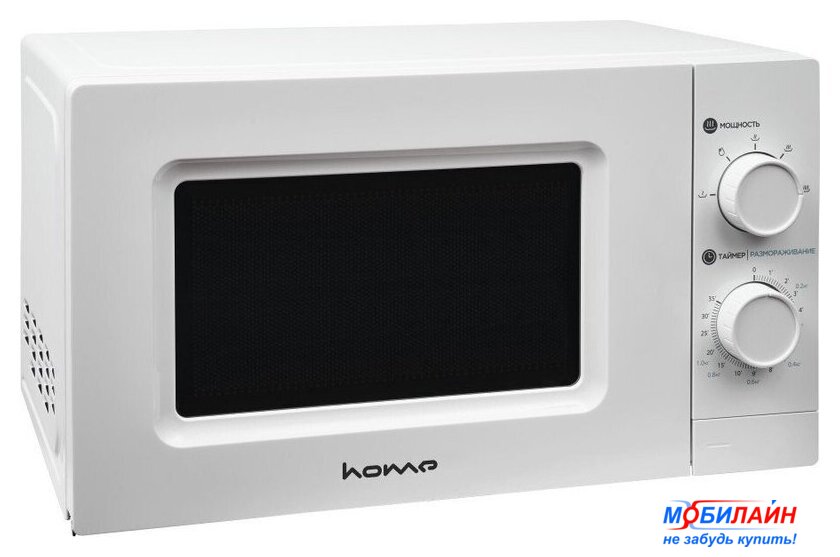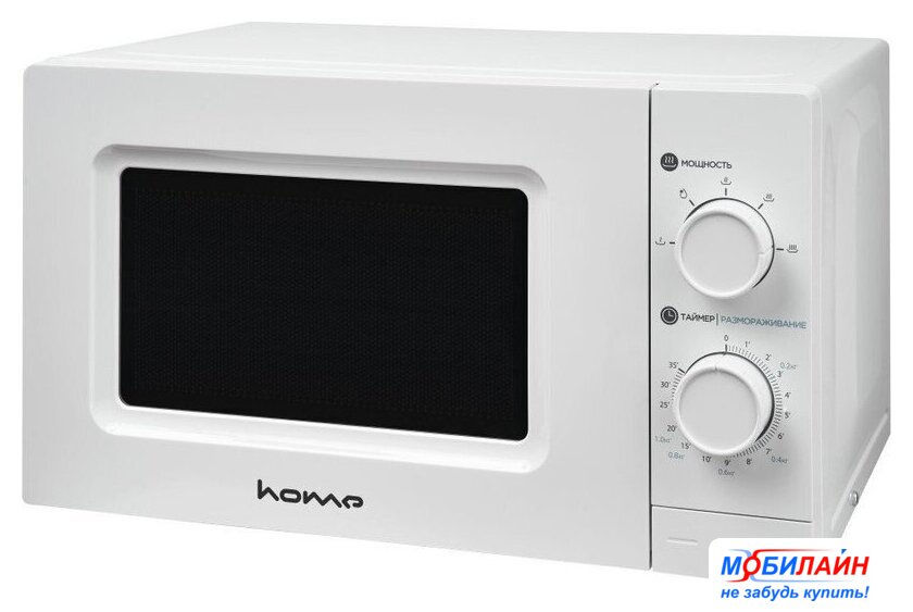 отдельностоящая, микроволны (соло), объем 20 л, выходная мощность микроволн 800 Вт, управление механическое, цвет белый