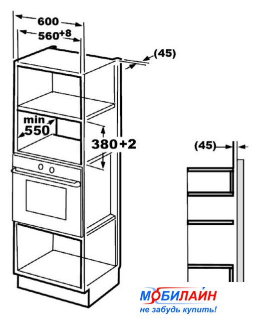 встраиваемая, микроволны (соло), объем 20 л, выходная мощность микроволн 700 Вт, управление электронное, автоприготовление, авторазмораживание, цвет белый