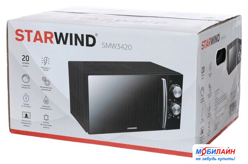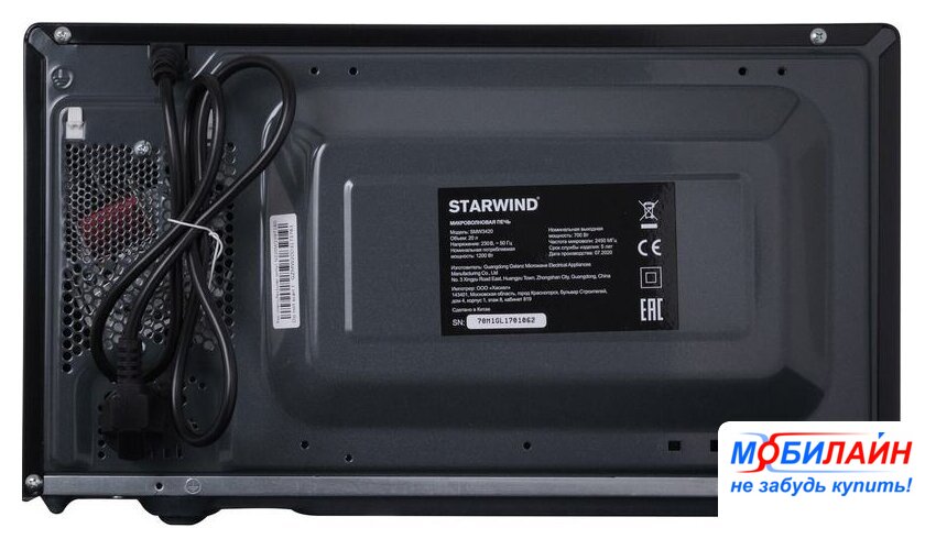 отдельностоящая, микроволны (соло), объем 20 л, выходная мощность микроволн 700 Вт, управление механическое, цвет черный