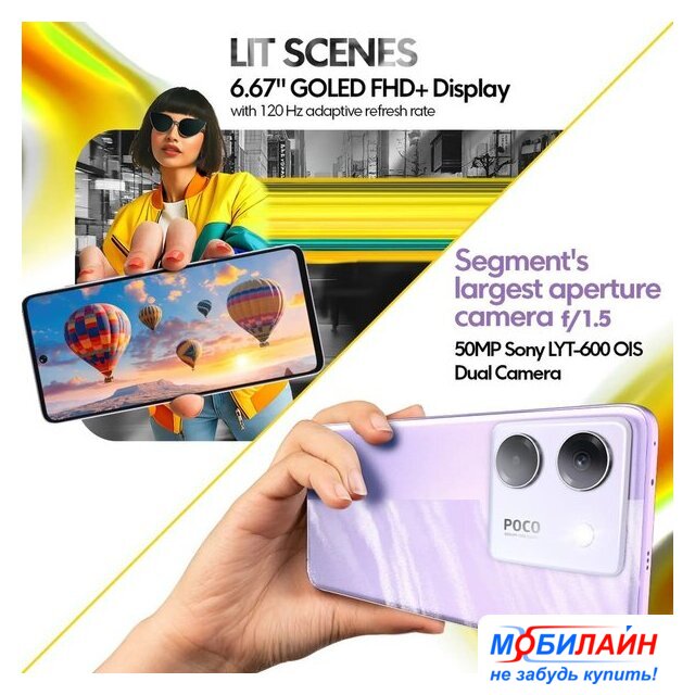 Android, экран 6.7" AMOLED (1080x2412) 120 Гц, Qualcomm Snapdragon 685, ОЗУ 6 ГБ, память 128 ГБ, камера 108 Мп, аккумулятор 5000 мАч, 2 SIM (mini-SIM (обычная)), влагозащита IP64