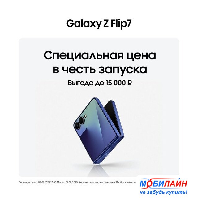 Отличия от предыдущего поколения | ✅ Galaxy Z Flip7 получил увеличенный внешний экран FlexWindow размером 4,1 дюйма с частотой обновления 120 Гц и яркостью до 2600 нит, что позволяет использовать множество функций без необходимости раскрывать устройство. Основной внутренний дисплей также увеличился до 6,9 дюйма, обеспечивая более комфортное взаимодействие с контентом. Кроме того, устройство стало тоньше и легче, что улучшает его портативность и удобство использования.✅ В отличие от Z Flip6, который оснащался процессором Snapdragon 8 Gen 3, новый Z Flip7 работает на базе 10-ядерного чипсета Exynos 2500, выполненного по 3-нм техпроцессу, что обеспечивает улучшенную производительность и энергоэффективность.✅ Внешний экран Galaxy Z Flip7 имеет более тонкие рамки, самые тонким в серии Galaxy Z Flip. Такая конструкция от края до края создает ощущение безграничного экрана, что делает его еще более удобным для использования в сложенном состоянии. В раскрытом виде это наш самый тонкий Flip, что ставит его в один ряд с любым другим смартфоном. Размер основного экрана увеличился до 6,9 дюйма, а соотношение сторон составляет 21:9, что обеспечивает более разнообразное использование. |