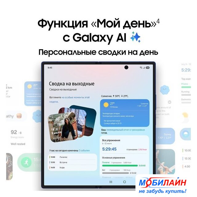Отличия от предыдущего поколения | ✅ В Galaxy Z Fold7 реализовано несколько инноваций, которые отличают его не только от Galaxy Z Fold6, но и от любого другого складного смартфона на рынке. Во-первых, широкие дисплеи как внутри, так и снаружи. Диагональ внешнего экрана теперь составляет 6.5 дюйма, а основной экран имеет впечатляющую диагональ 8 дюймов с более широким соотношением сторон, что обеспечивает более плавную работу в многозадачном режиме.✅ И хотя дисплеи стали больше, сам смартфон значительно уменьшился в размерах и стал более портативным, чем все предыдущие Galaxy Z Fold, как в сложенном, так и в раскрытом виде. В раскрытом виде его толщина составляет 4.2 мм, а в сложенном — 8.9 мм, что делает его примерно на 25% тоньше Galaxy Z Fold6.✅ В сложенном состоянии экран Galaxy Z Fold7 имеет соотношение сторон 21:9, аналогичное соотношению сторон у премиальных смартфонов моноблокового типа. Такое улучшенное соотношение сторон обеспечивает удобство и естественность набора текста, а также повышает производительность. |