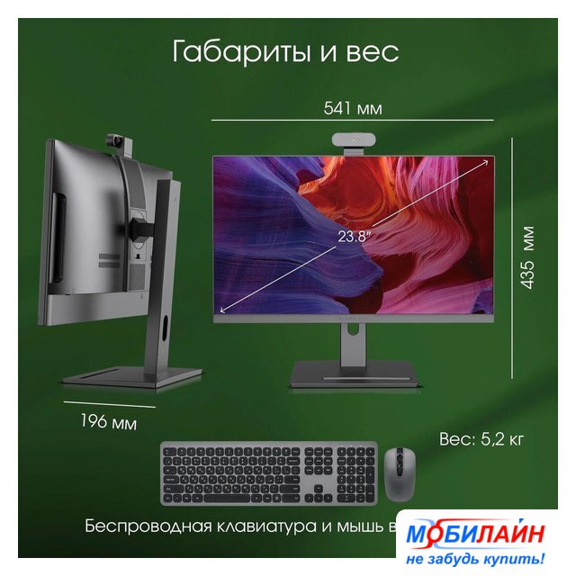 23.8" 1920 x 1080 IPS, матовый, несенсорный, Intel Core i5 1235U 4400 МГц, 16 ГБ, SSD 512 ГБ, видеокарта встроенная, Windows 11 Pro, цвет черный