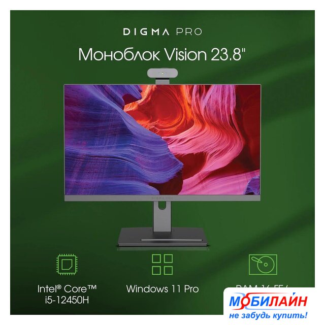 23.8" 1920 x 1080 IPS, матовый, несенсорный, Intel Core i5 12450H 4400 МГц, 16 ГБ, SSD 512 ГБ, видеокарта встроенная, без ОС, цвет черный