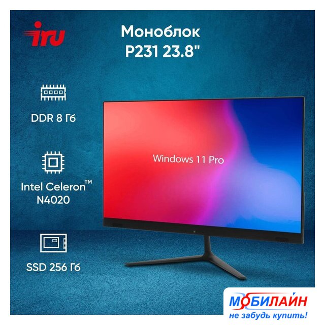 23.8" 1920 x 1080 IPS, матовый, несенсорный, Intel Processor N95 3400 МГц, 8 ГБ, SSD 512 ГБ, видеокарта встроенная, Windows 11 Pro, цвет черный