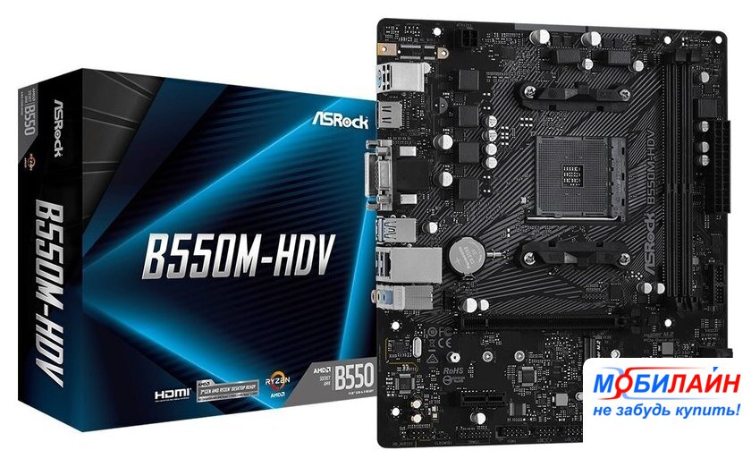 mATX, чипсет AMD B550, память 4xDDR4 до 4733 МГц, слоты: 2xPCIe x16 4.0, 1xPCIe x1, 2xM.2, 5+3 фаз питания