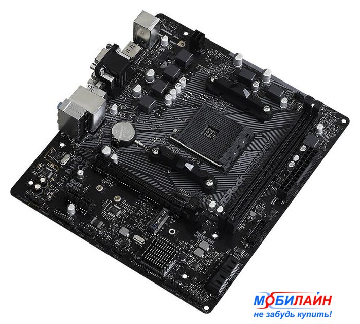 mATX, сокет AMD AM4, чипсет AMD B550, память 4xDDR4, слоты: 1xPCIe x16, 2xPCIe x1, 2xM.2