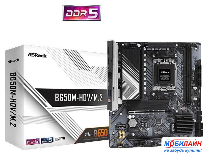 mATX, сокет AMD AM5, чипсет AMD B650, память 4xDDR5 до 7600 МГц, слоты: 1xPCIe x16, 1xPCIe x1, 2xM.2