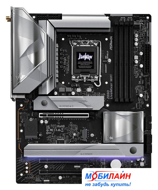 mATX, сокет Intel LGA1851, чипсет Intel B860, память 4xDDR5 до 9200 МГц, слоты: 2xPCIe x16 5.0, 3xM.2, 802.11ax (Wi-Fi 6E)+Bluetooth 5.3, 12+1+2 фаз питания