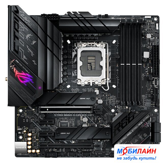 mATX, сокет Intel LGA1700, чипсет Intel B760, память 4xDDR5 до 7800 МГц, слоты: 1xPCIe x16 5.0, 1xPCIe x4, 3xM.2, 802.11ax (Wi-Fi 6E)+Bluetooth 5.3, 12+1+1 фаз питания