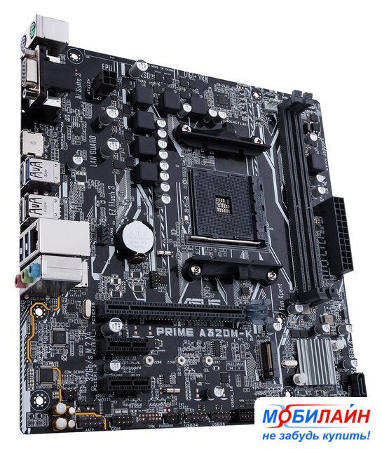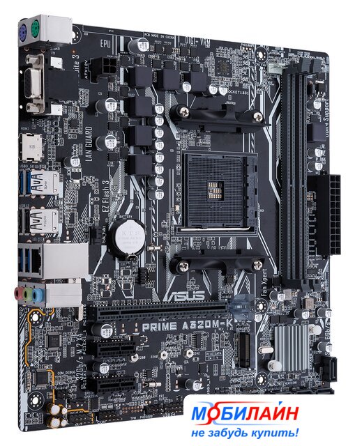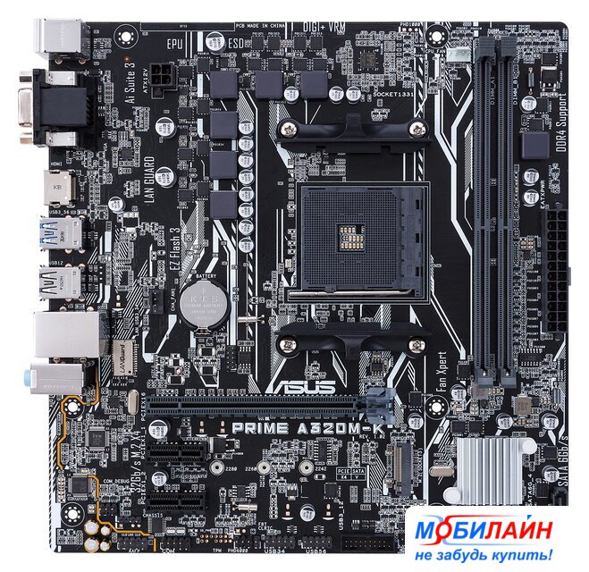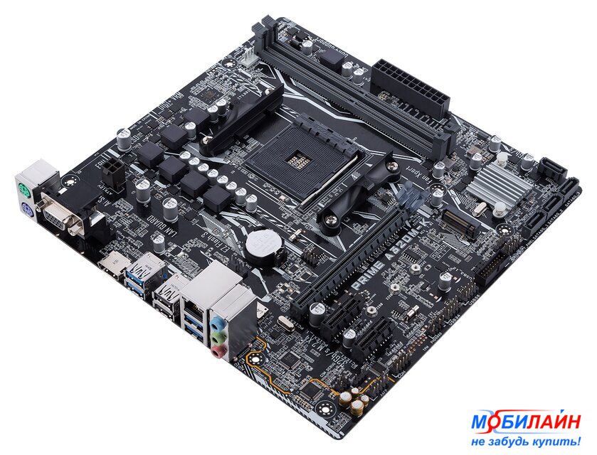 mATX, сокет AMD AM4, чипсет AMD A520, память 2xDDR4, слоты: 1xPCIe x16, 2xPCIe x1, 1xM.2
