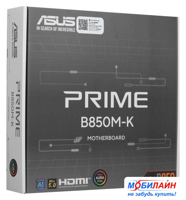 mATX, сокет AMD AM5, чипсет AMD B850, память 4xDDR5 до 8200 МГц, слоты: 2xPCIe x16 5.0, 2xM.2, 8+2+2 фаз питания