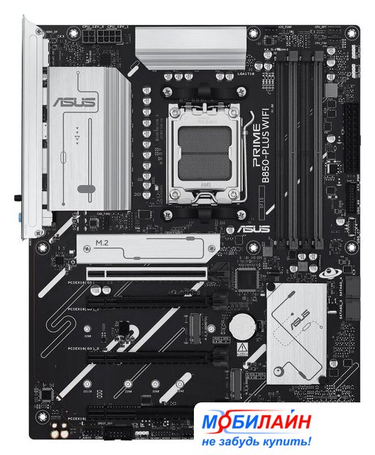 mATX, чипсет AMD B850, память 4xDDR5 до 8000 МГц, слоты: 1xPCIe x16 5.0, 1xPCIe x1, 3xM.2, 14+2+1 фаз питания
