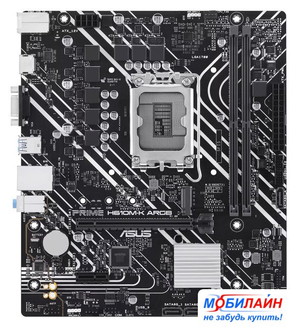mATX, сокет Intel LGA1700, чипсет Intel H610, память 2xDDR5 до 5600 МГц, слоты: 1xPCIe x16 4.0, 1xPCIe x1, 1xM.2
