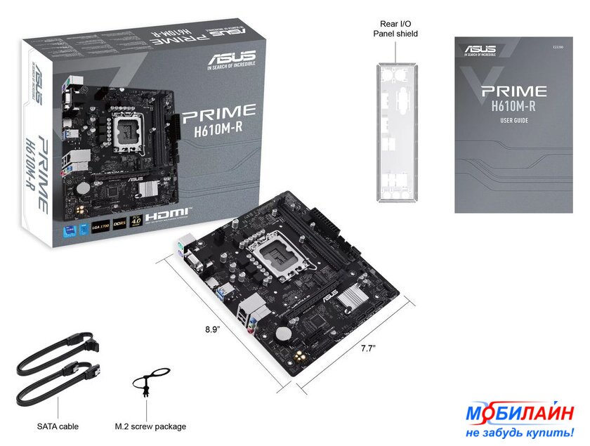 mATX, сокет Intel LGA1700, чипсет Intel H610, память 2xDDR5 до 5600 МГц, слоты: 1xPCIe x16, 1xPCIe x1, 1xM.2