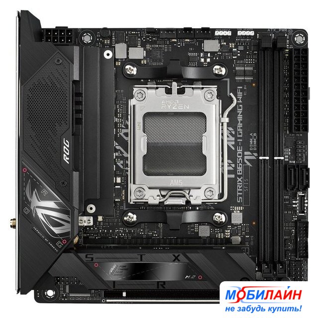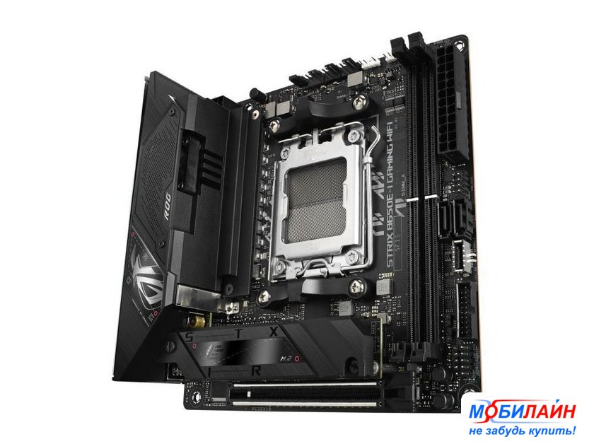 mATX, чипсет AMD X870, память 4xDDR5 до 8200 МГц, слоты: 2xPCIe x16 5.0, 2xM.2, 802.11be (Wi-Fi 7)+Bluetooth 5.4, 14+2+2 фаз питания