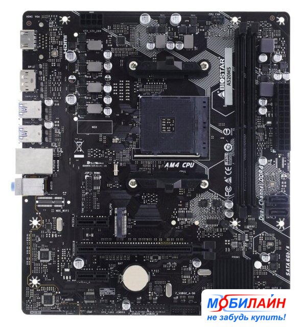 mATX, сокет AMD AM4, чипсет AMD A520, память 2xDDR4 до 4600 МГц, слоты: 1xPCIe x16 3.0, 1xPCIe x1, 1xM.2