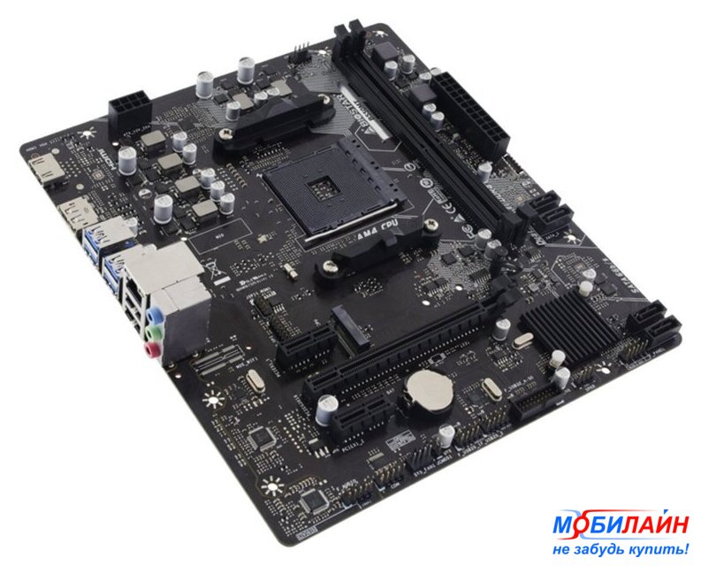 mATX, сокет AMD AM4, чипсет AMD B450, память 4xDDR4 до 4400 МГц, слоты: 1xPCIe x16 3.0, 2xPCIe x1, 1xM.2