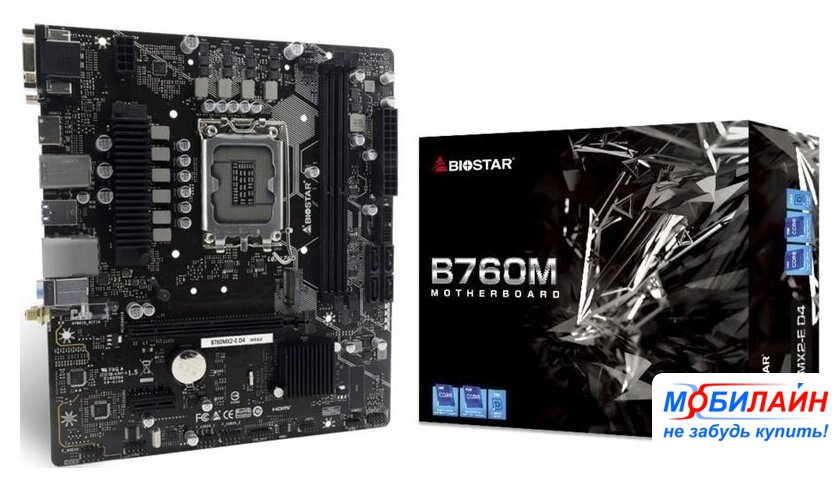 mATX, сокет Intel LGA1700, чипсет Intel B760, память 4xDDR4 до 4800 МГц, слоты: 1xPCIe x16 4.0, 2xPCIe x1, 2xM.2