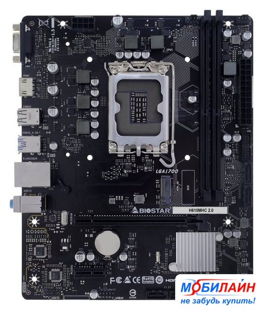mATX, сокет Intel LGA1700, чипсет Intel H610, память 2xDDR4, слоты: 1xPCIe x16, 1xPCIe x1, 1xM.2
