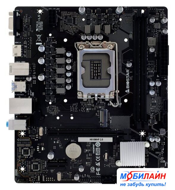 mATX, сокет Intel LGA1700, чипсет Intel H610, память 2xDDR4 до 3200 МГц, слоты: 1xPCIe x16 4.0, 1xPCIe x1, 1xM.2