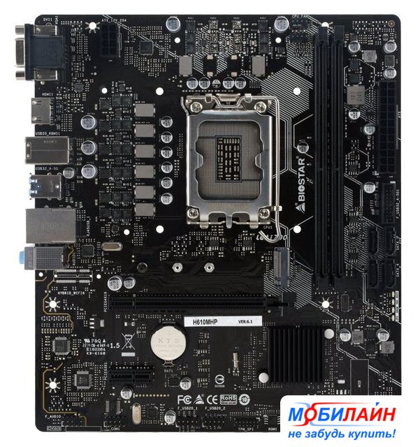 mATX, чипсет Intel H610, память 2xDDR4 до 3600 МГц, слоты: 1xPCIe x16 3.0, 2xPCIe x1, 1xM.2