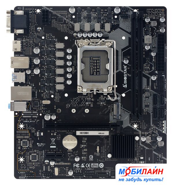 mATX, чипсет Intel H610, память 2xDDR4 до 3200 МГц, слоты: 1xPCIe x16 4.0, 1xPCIe x1, 1xM.2