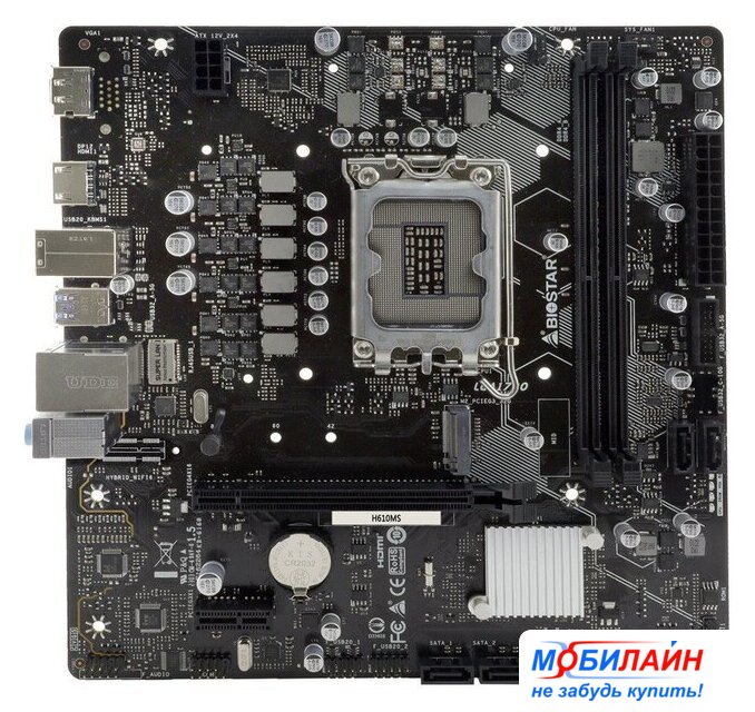 mATX, сокет Intel LGA1700, чипсет Intel H610, память 2xDDR4 до 3200 МГц, слоты: 1xPCIe x16 4.0, 1xPCIe x1, 1xM.2