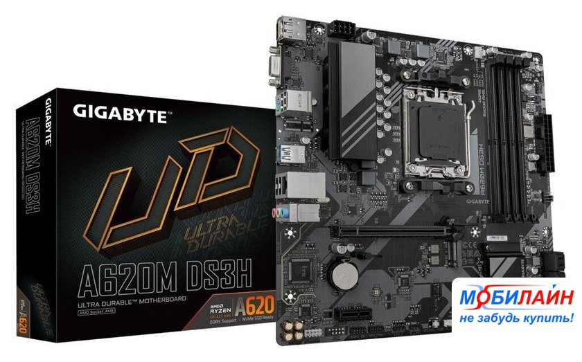 mATX, чипсет AMD A620, память 2xDDR5 до 8000 МГц, слоты: 1xPCIe x16 4.0, 2xM.2, 802.11ax (Wi-Fi 6)+Bluetooth 5.3