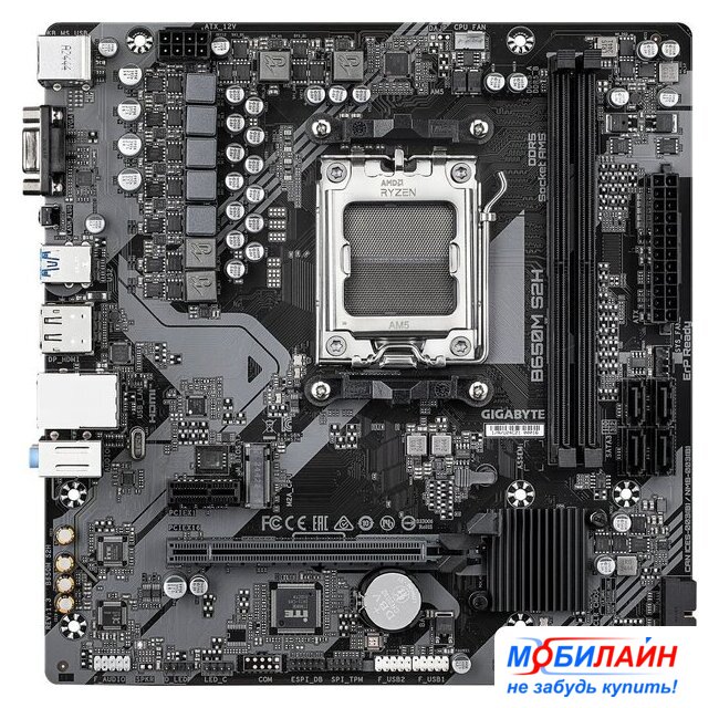 mATX, сокет AMD AM5, чипсет AMD B650, память 2xDDR5 до 5200 МГц, слоты: 1xPCIe x16 4.0 и 3.0, 1xPCIe x4, 1xPCIe x1, 1xM.2, 802.11ac (Wi-Fi 5)+Bluetooth 4.2, 6+2+1 фаз питания