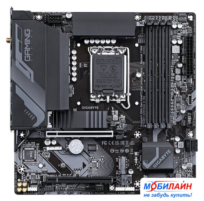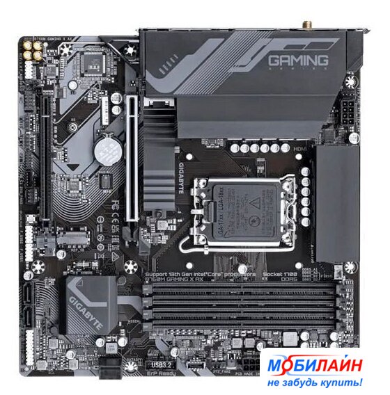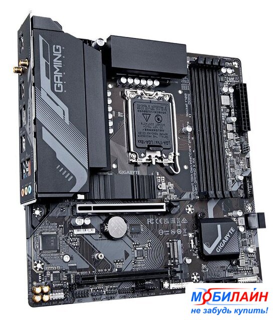 mATX, чипсет Intel B760, память 4xDDR4 до 5333 МГц, слоты: 1xPCIe x16 4.0, 2xPCIe x1, 2xM.2, 802.11ax (Wi-Fi 6)+Bluetooth 5.3, 4+1+1 фаз питания