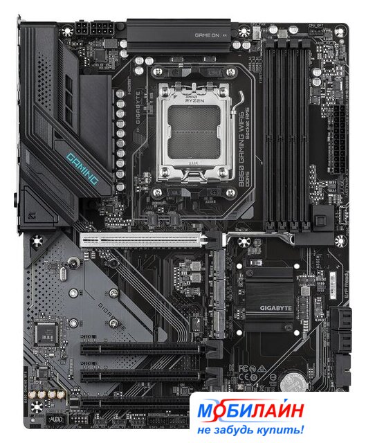 mATX, сокет AMD AM5, чипсет AMD B850, память 4xDDR5 до 8200 МГц, слоты: 2xPCIe x16 5.0, 2xM.2, 802.11ax (Wi-Fi 6E)+Bluetooth 5.3, 10+2+2 фаз питания