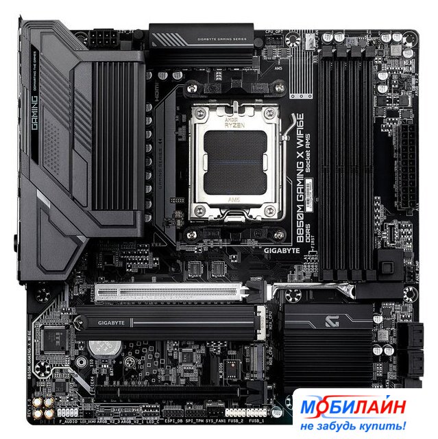 ATX, чипсет AMD B850, память 4xDDR5 до 8000 МГц, слоты: 4xPCIe x16 5.0, 3xM.2, 802.11ax (Wi-Fi 6E)+Bluetooth 5.3, 8+2+1 фаз питания
