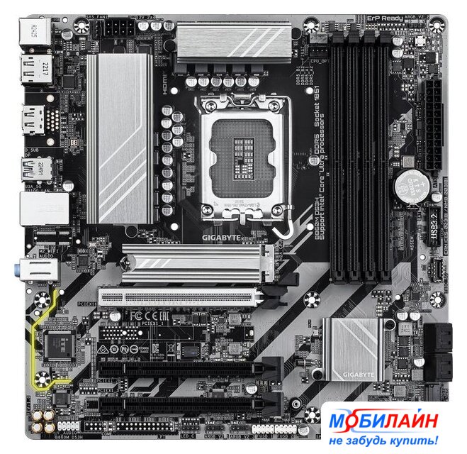 mATX, сокет Intel LGA1851, чипсет Intel B860, память 4xDDR5 до 9066 МГц, слоты: 1xPCIe x16 5.0, 2xPCIe x1, 2xM.2, 4+1+2 фаз питания