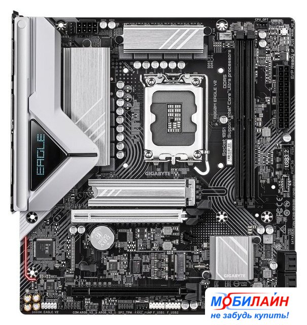 mATX, сокет Intel LGA1851, чипсет Intel B860, память 2xDDR5 до 9066 МГц, слоты: 2xPCIe x16 5.0, 2xM.2, 6+1+2 фаз питания